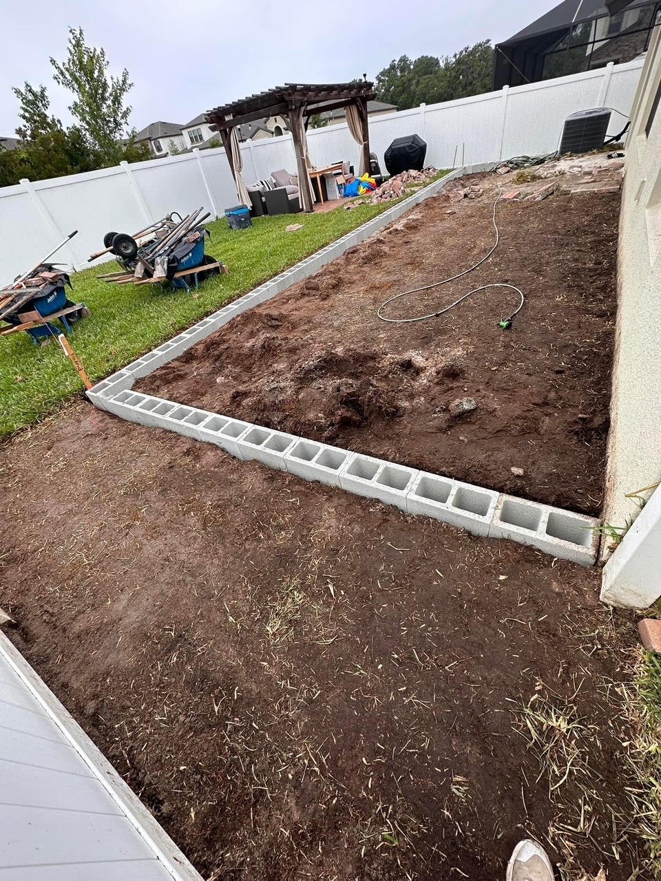 The process of digging and removing soil to prepare the ground for construction or landscaping